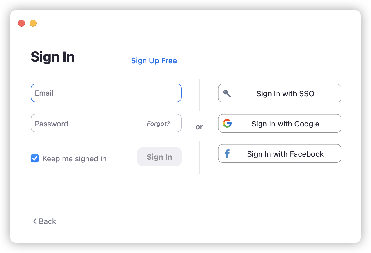进入 Zoom 登陆界面